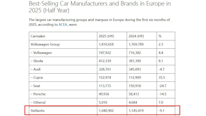 数据上看,其2022年全球销量634万辆,2023年下滑至617.5万辆,2024年约为542万辆,而2025年上半年,仅为269万辆,同比进一步下滑8%。