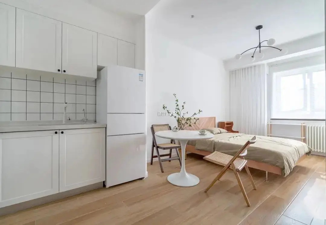 今日要分享的是一位90后小姐姐25㎡开间小公寓的装修案例。全屋主打北欧风,以白色与原木色为主色调,清新明亮又自然舒适。从功能与美观角度出发,让空间相互融合,使整个空间舒适得体、有条不紊。